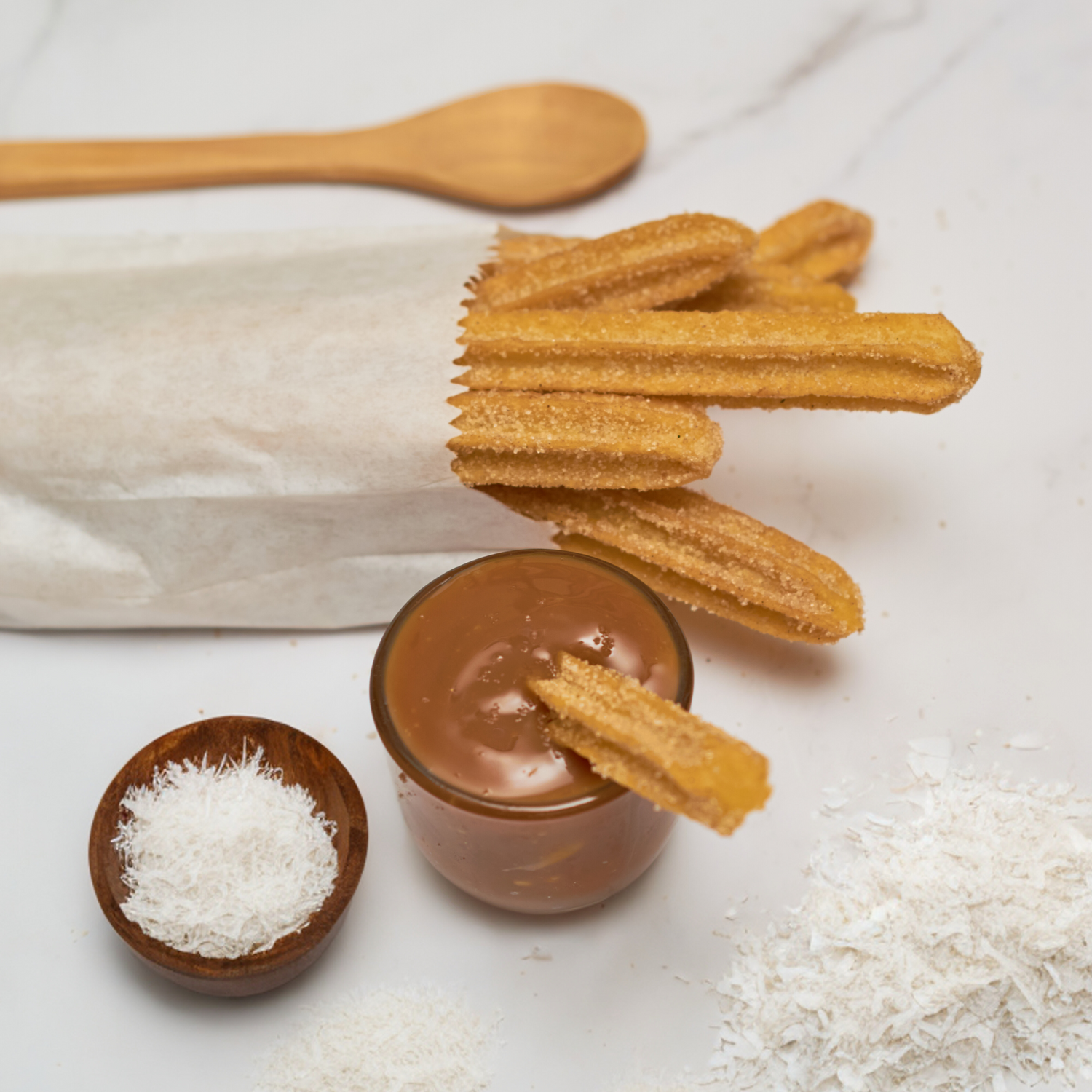 Coconut Churros with Caramel Sauce