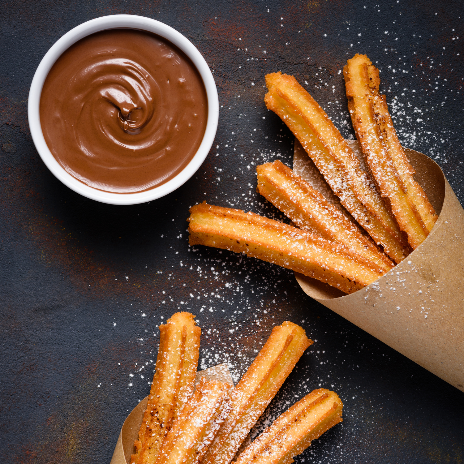 - Dip your warm churros in the hazelnut spread and enjoy!