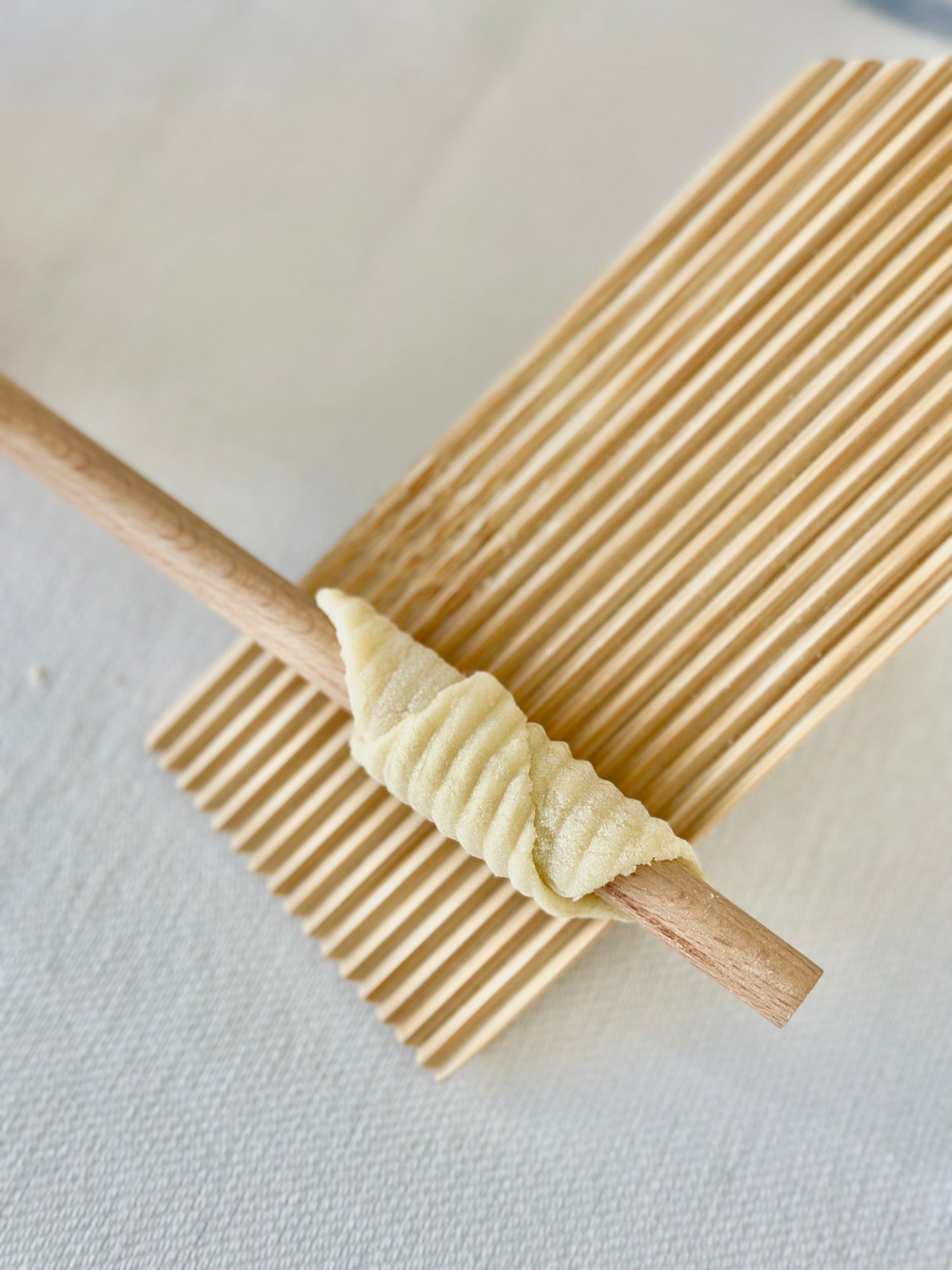 - Divide the dough and shape into cylinders. Cut the gnocchi and use the KneadEat Gnocchi Board to create a textured surface.